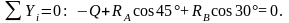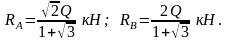 Рассмотрим теперь аналитический способ решения. Начало координат выберем в точке О, ось у направим по прямой ОЕ, а ось х — по прямой АО. Проектируя силы Q, RA и RB на оси х и у, получим следующие два уравнения равновесия: