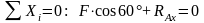 Выберем оси координат, как указано на рис. 1.2.6, найдем проекцию каждой силы на эти оси и составим два уравнения равновесия, приравнивая нулю сумму проекций всех сил на каждую из координатных осей: