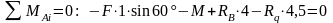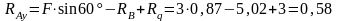 Проверка. Составим уравнение моментов относительно точки В, подставим найденные реакции:
