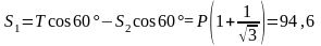 Задачу можно решить и геометрически, построив замкнутый многоугольник сил Т, Р, S1, S2 (рис. 1.2.7).