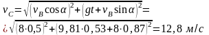 Скорость камня при падении найдем через проекции скорости на оси координат: