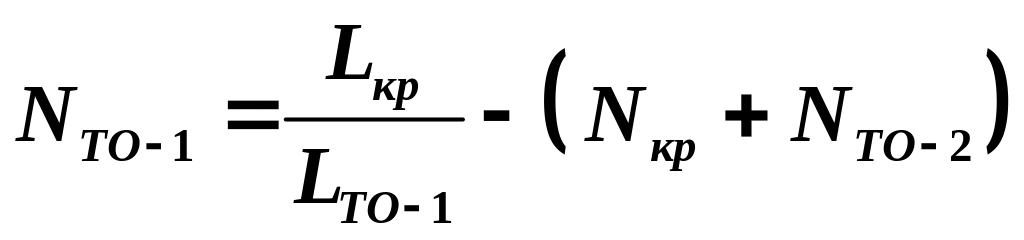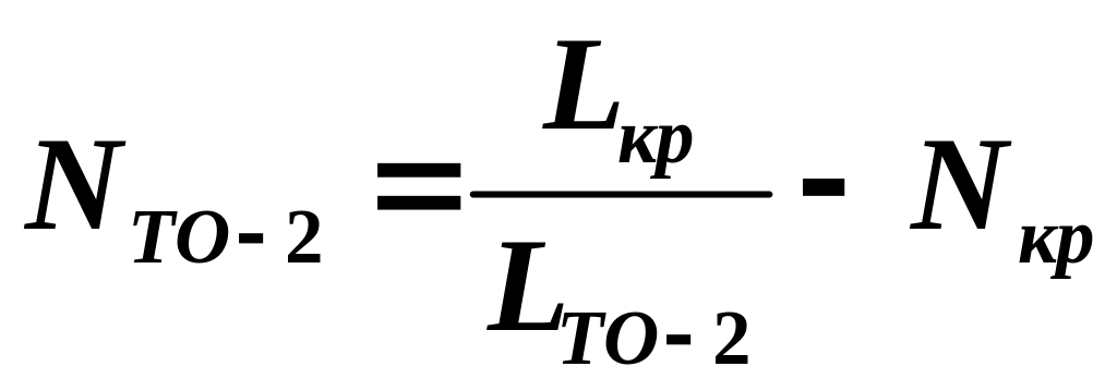 Відповідно до прийнятих позначень розрахунок числа ремонтів і ТО на один автомобіль за цикл розраховується слідуючим чином:
