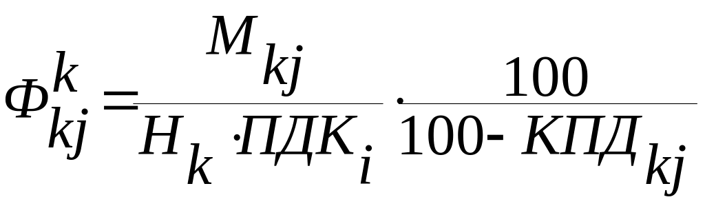 Mkj – максимальная по всем режимам выброса величины выброса данного вещества, г/с;