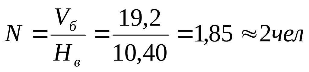 Норма выработки на выкладку бутовой полосы шириной до 6,0м на пластах мощностью 0,96-1,05м составляет Нв = 10,40м3. Необходимое количество рабочих при этом составит: