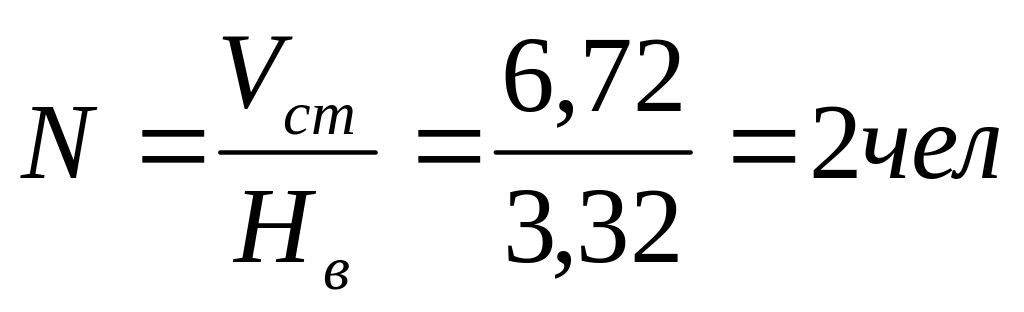 Норма выработки на выкладку чураковой стенки с заготовкой чурок площадью 6,01-8,0м составляет Нв = 3,32м. Необходимое, количество рабочих составит: