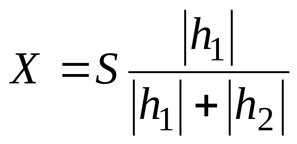 Віддаль Х від пікету до точки нульових робіт визначають на основі подібності трикутників. Для цього складають відношення: