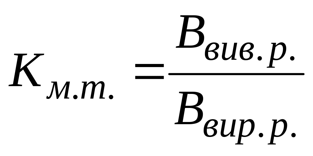 Коефіцієнт міжрайонної товарності характеризує, перш за все, роль будь-якої галузі у міжрайонному товарообміні. Тому цей показник доцільно використовувати для оцінки значення різних галузей у розвитку міжрайонних і міждержавних виробничо-територіальних зв’язків. Виробничу спеціалізацію районів можна виявити лише на основі аналізу складу і структури випуску продукції окремими галузями, оскільки їх роль у виробництві є визначальною в процесі формування напрямів розвитку господарства відповідних територій. Що стосується внутрірайонного товарообміну, то він лише частково характеризує спеціалізацію господарського комплексу і може використовуватись як додатковий показник при оцінці виробничої спеціалізації районів. Таким чином, коефіцієнт міжрайонної товарності (Км.т.) дає можливість оцінити потенціал району і точніше визначити його місце в товарообміні [54, с. 38]: