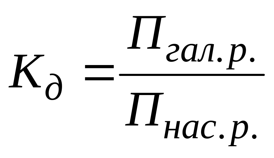де Пгал.р. – питома вага галузі району у виробництві продукції відповідною галуззю в масштабі всієї країни; Пнас.р. – питома вага населення району в загальній кількості населення країни.