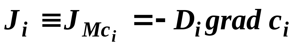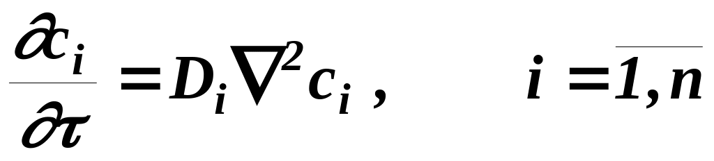 Уравнение (40) получило название - второй закон Фика, оно описывает распределение концентрации i-го компонента в неподвижной среде в любой момент времени.