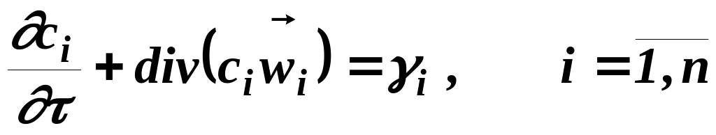 (38) - уравнения конвективной диффузии компонентов смеси.