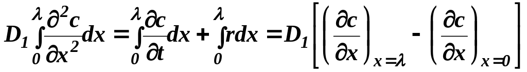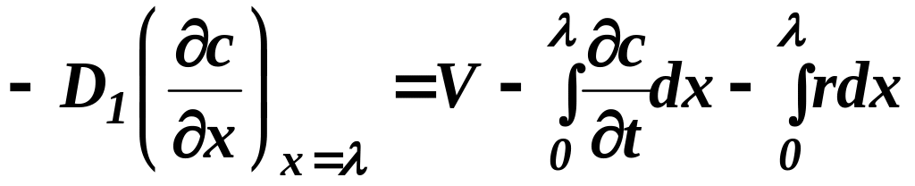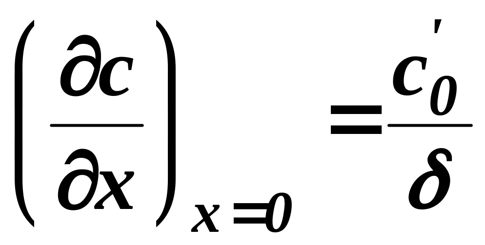 где b0 и c0 - концентрации двух реагентов в объеме жидкости. Условием, определяющим решение задачи, является второе условие по пространственной координате. В случае пленочной модели это условие имеет вид: