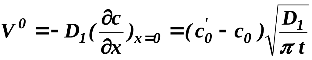(44) При более тщательном подходе всякий раз, когда концентрация в объеме c0 равна равновесной концентрации с', или, когда r = 0 в объеме жидкости, следует руководствоваться граничными условиями (43) или (44). Это может быть показано интегрированием уравнения (38) от границы раздела фаз до расстояния , где с = с':