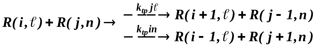 где p = 1 соответствует прямой реакции, р = 2 - обратной; k1 - положительная величина, k2 - отрицательная.