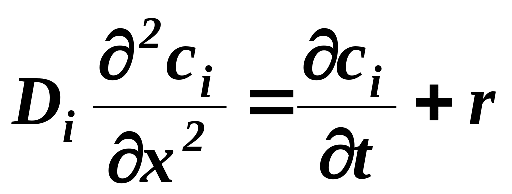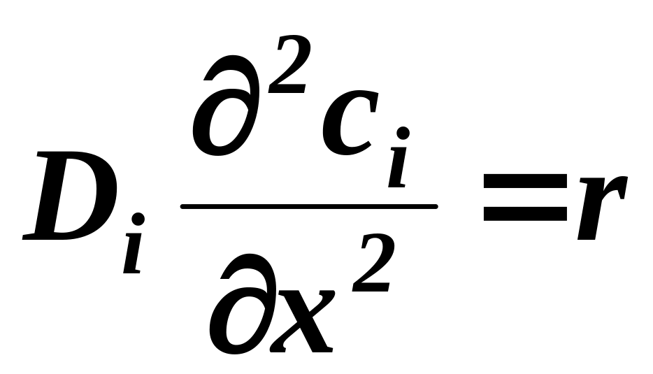Действительная глубина проникновения почти равна . В самом деле, химическая реакция всегда вызывает более крутое увеличение градиента концентраций на единице расстояния вблизи поверхности раздела фаз. Уравнения (35) и (36), как будет показано ниже, должны всегда выполняться, когда