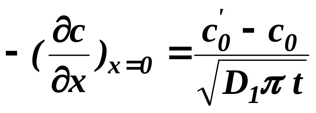 Шервуд и Вей [4] установили, что для ионных компонентов движущая сила массопередачи не адекватна просто градиенту концентраций. В этом случае условия отсутствия массопереноса могут создаться при конечном градиенте концентраций на поверхности раздела. Согласно пенетрационной модели, распределение концентраций в нулевой момент времени может быть записано как