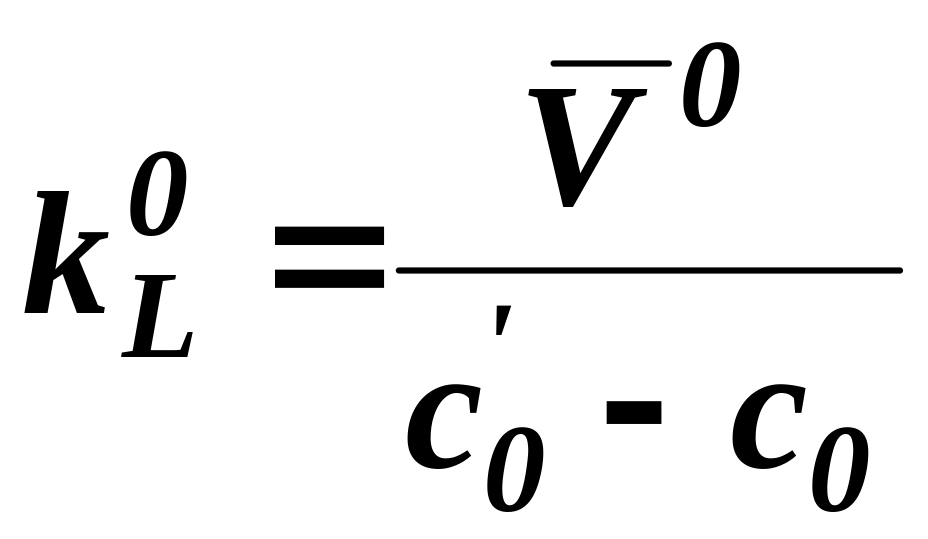 Из уравнения (21) видно, что k0L пропорционально коэффициенту диффузии в степени 1/2, что подтверждается экспериментально. Конечно, уравнение (21) можно непосредственно использовать для вычисления k0L только в тех случаях, когда известно t*, как, например, в случае движения пузырьков газа. При подстановке уравнения (9) в (21) получим для данного случая: