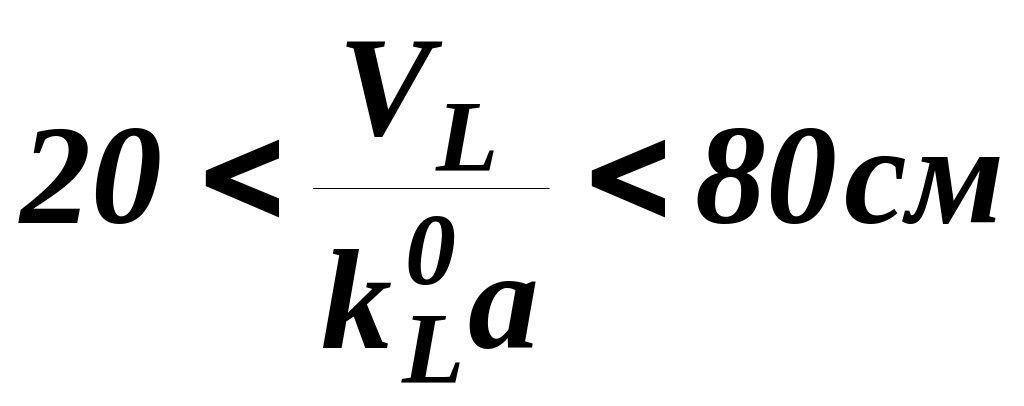 Интервал, указанный в уравнении (31), подтверждается экспериментально. Для насадочной колонны обычные значения высоты единицы переноса при лимитировании массопередачи сопротивлением в жидкой фазе составляют от 20 до 80 см: