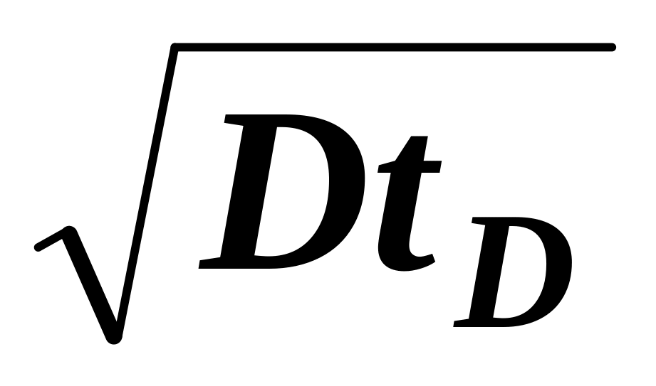 Величина s имеет физический смысл скорости обновления поверхности и 1/s может рассматриваться как средний возраст поверхностных элементов. Сравнение уравнений (21) и (28) показывает, что в любом случае коэффициент абсорбции пропорционален квадратному корню из отношения коэффициента диффузии к возрасту элементов поверхности, причем коэффициент пропорциональности близок к 1. Кроме тех случаев, для которых при использовании модели Хигби величину t* можно рассчитать независимым путем, для определения t* и s применяют уравнения (21) и (28). Здесь и далее предполагается опустить различие между моделями Хигби и Данквертса и определять «эквивалентное время диффузии» tD с помощью уравнения: