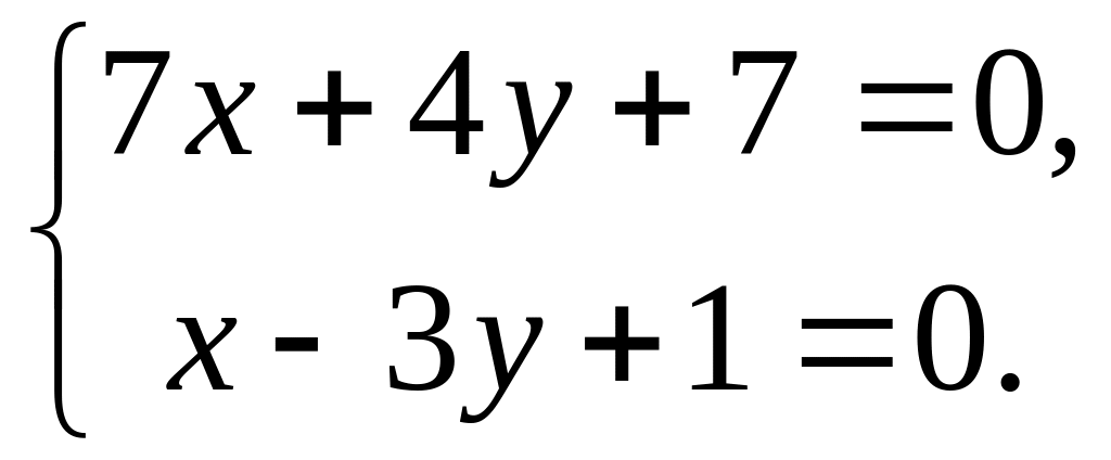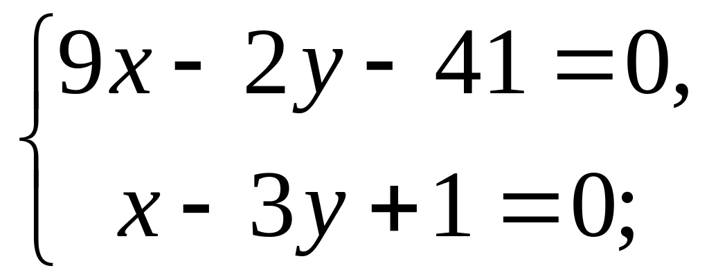 Найдем координаты вершин треугольника, решив совместно три системы уравнений: