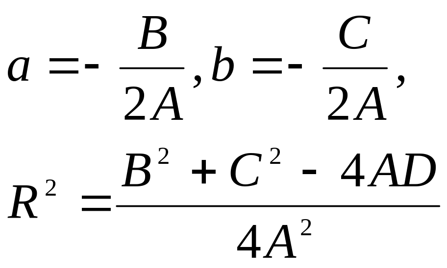 Тогда центр (a;b) и радиус R окружности можно найти по формулам