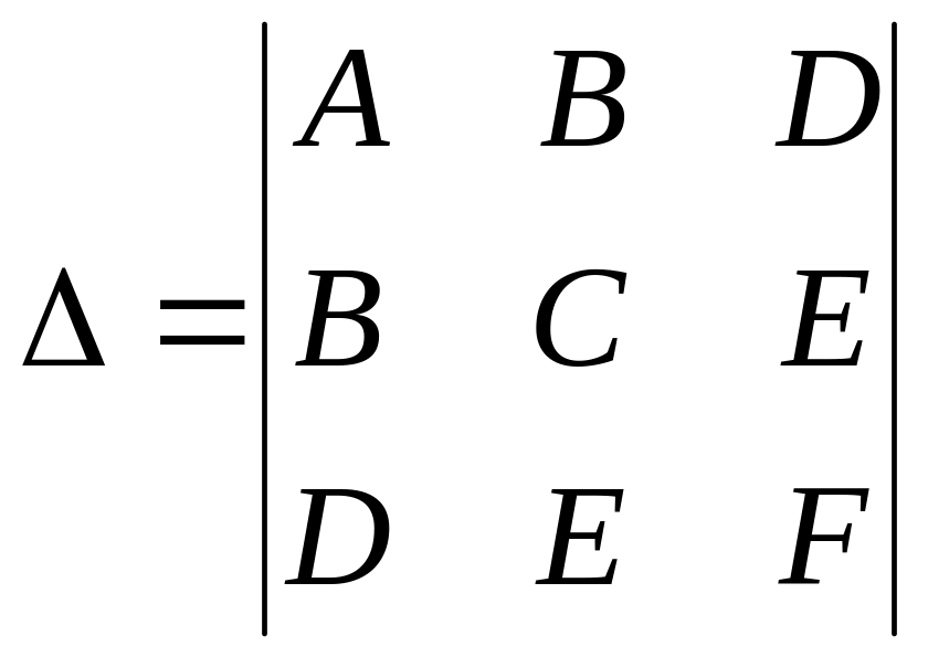 Однако три нижеприведенных выражения, составленных из величин A’, B’, C’, D’, E’, F’, всегда остаются равными одноименным выражениям, составленным из величин A, B, C, D, E, F . Эти три выражения называются инвариантами уравнения второй степени.