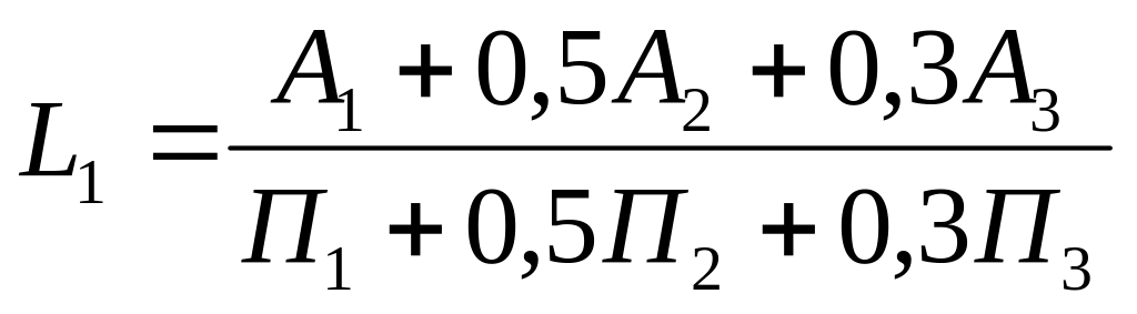 Общий показатель платежеспособности ((А1+0,5А2+0,3А3)/(П1+0,5П2+0,3 П3)) |