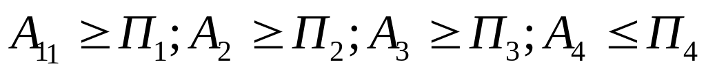 Для определения ликвидности баланса следует сопоставить итоги приведенных групп по активу и пассиву и определить платежный излишек или недостаток по вышеуказанным группам. Баланс считается абсолютно ликвидным, если имеют место следующие соотношения: