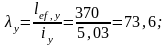 Обчислюємо гнучкості підібраного стрижня, якщо lef,x = lef,y =3,7м:
