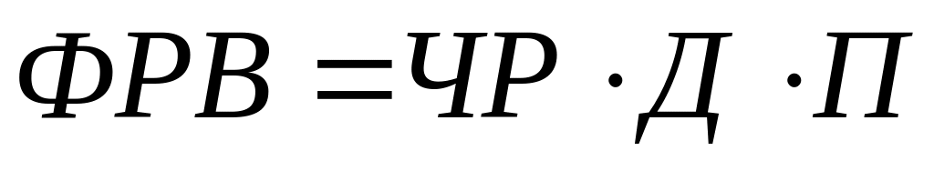ФРВ зависит от численности рабочих (ЧР), количества отработанных дней одним рабочим в среднем за год (Д) и средней продолжительности рабочего дня (П). Эту зависимость можно представить следующим образом: