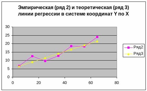 Ниже представлены эмпирические линии регрессии усредненных значений Yср по Х и
