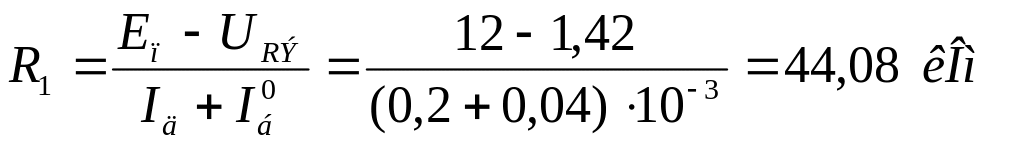 Выберем ток делителя Iд, протекающего через R2, из условия Iд = 5 × Iб0, и определим величины резисторов R1, R2 по следующим соотношениям: