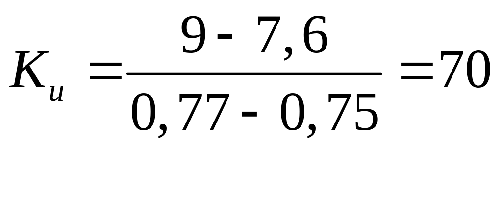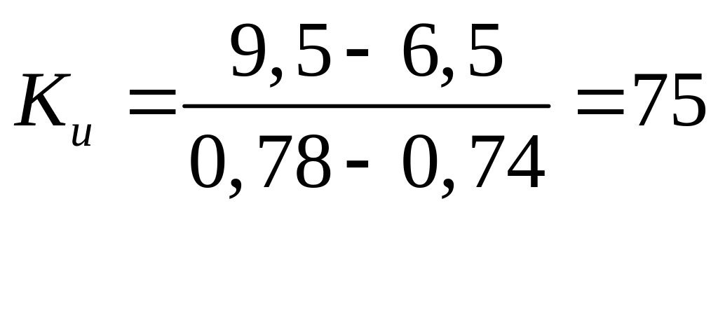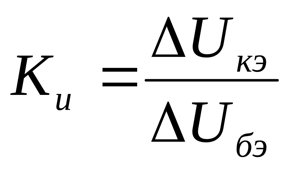 Коэффициент усиления по напряжению, Кu (отношение установившегося значения напряжения сигнала на выходе усилителя к напряжению сигнала на его входе) определим по формуле: