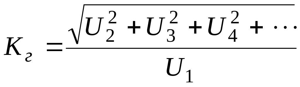 Коэффициентом гармоник называется отношение эффективного (действующего), значения суммы высших гармоник выходного напряжения к эффективному значению первой его гармоники, вычисляется по формуле: