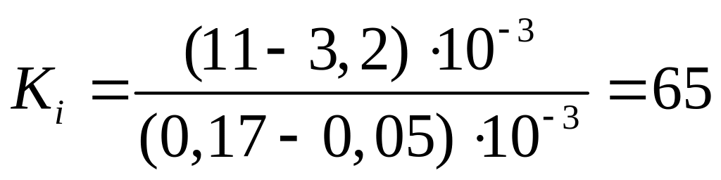 Коэффициент усиления по току Кi (отношение установившегося значения тока сигнала в нагрузку к току сигнала на входе) определим по формуле: