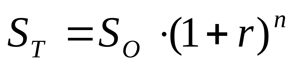 При расчете будущей суммы вклада в процессе наращения используется формула: