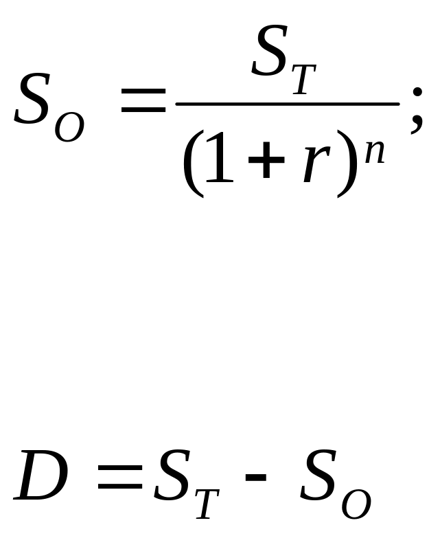 При расчете настоящей стоимости средств в процессе дисконтирования по сложным процентам используется следующая формула: