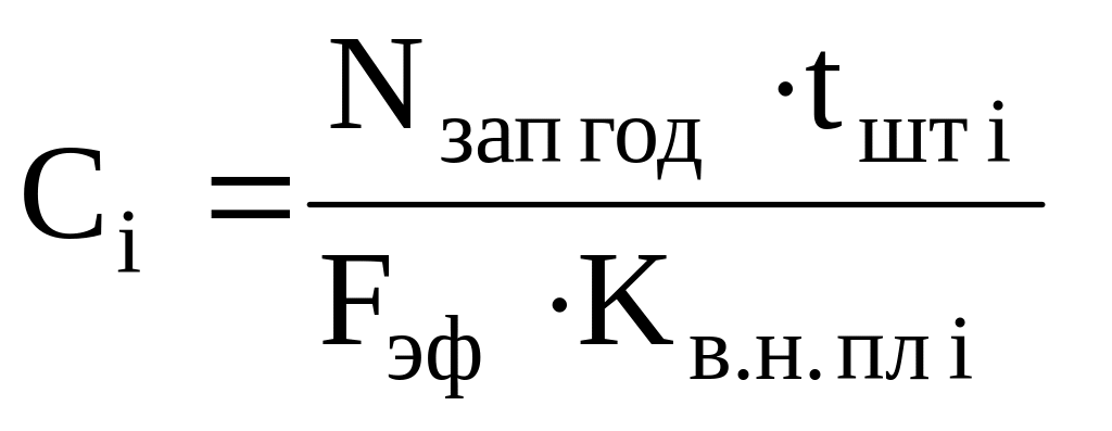 Расчет потребности в основном оборудовании определяется по каждому виду работы технологического процесса (C i), единиц оборудования