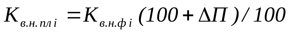 К в.н.пл i – планируемый коэффициент выполнения нормы времени