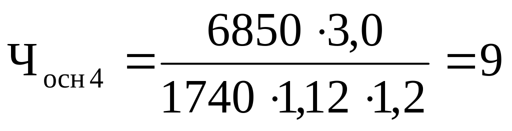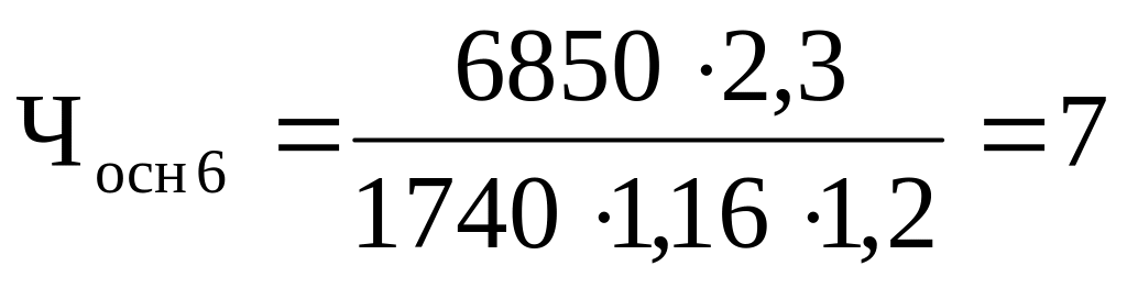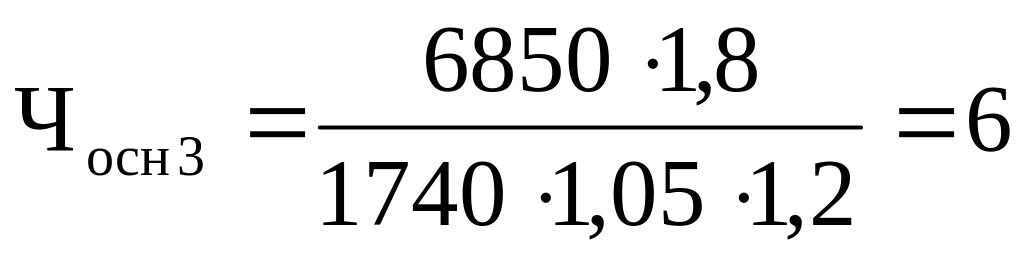 Расчет численности основных рабочих (Ч осн i), чел. на 2 смены:
