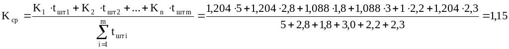 где К в.н.ф i – фактический коэффициент выполнения нормы времени за отчетный период.