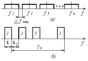 Рис.5.4. Многостанционный доступ с разделением по частоте (а) и по времени (б)