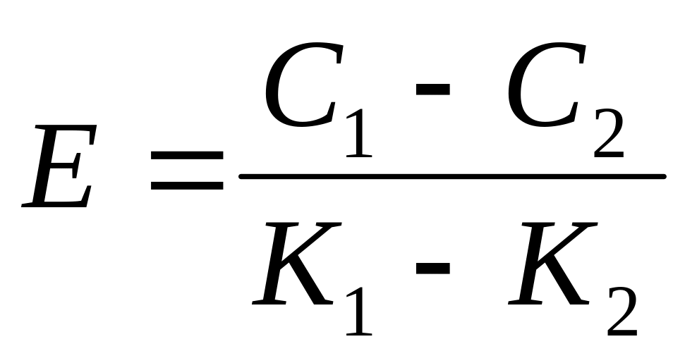 где К, К1 и К2 – капитальные вложения по вариантам; С1 и С2 – себестоимость годового объема продукции по тем же вариантам; С – текущие производственные затраты ( полная себестоимость производства); Ен –нормативный коэффициент сравнительной эффективности.