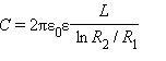 Примерами конденсаторов с другой конфигурацией обкладок могут служить сферический и цилиндрический конденсаторы. Сферический конденсатор – это система из двух концентрических проводящих сфер радиусов R1 и R2. Цилиндрический конденсатор – система из двух соосных проводящих цилиндров радиусов R1 и R2 и длины L. Емкости этих конденсаторов, заполненных диэлектриком с диэлектрической проницаемостью ε, выражаются формулами: