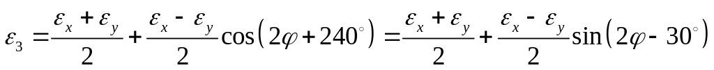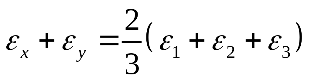 Покажемо, як знаючи значення деформацій в трьох напрямках, визначити величину і напрямок головних напружень на поверхні деталі.