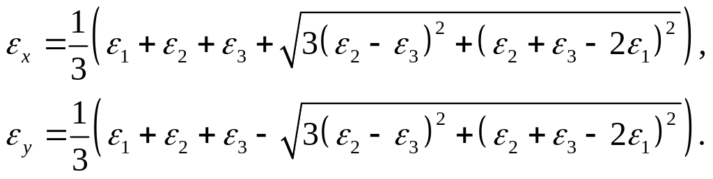 З попередніх співвідношень знаходимо величину і напрямок головних деформацій: