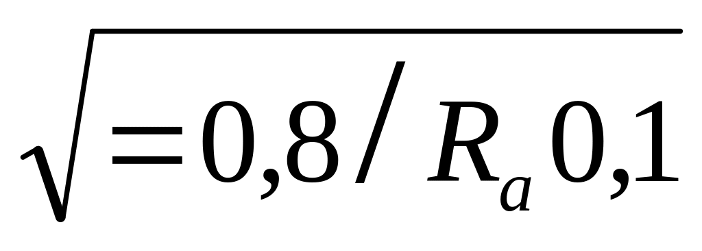 Шероховатость поверхности по параметру Ra не должна быть более 0,1 мкм на базовой длине ℓ= 0,8 мм, которая проставляется, т.к. нарушено соответствие между числовыми значениями параметра Ra и базовой длины ℓ (табл.5). Направление неровностей указано –параллельное (его условное обозначение = ). Знак означает, что для требуемой шероховатости вид обработки не устанавливается. |