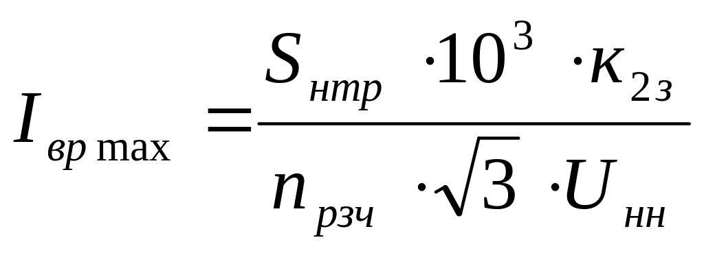 Для чарунки вводу максимальний робочий струм на стороні низької напруги трансформатора визначається за формулою (6.1), А.