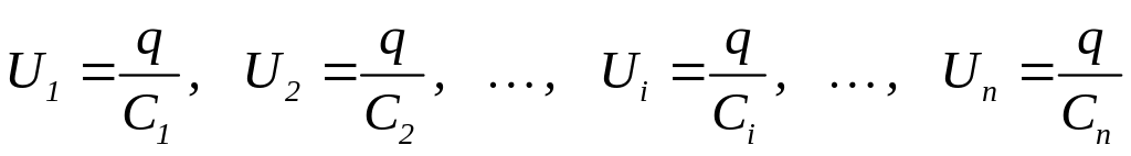 где Сi емкость одного конденсатора. Суммарное напряжение между крайними обкладками всей группы конденсаторов равно