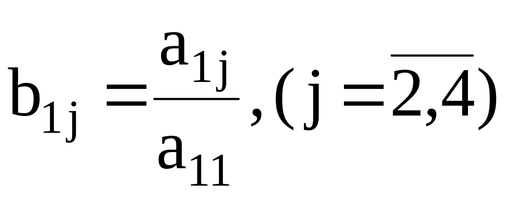 Последний столбец таблицы служит для контроля вычислений. Например, рассмотрим четвертую строку таблицы. Элемент b15=4 получен так же, как все остальные элементы строки, т.е. (-8)/2. После его вычисления проверяем, нет ли ошибки в вычислении элементов этой строки. Последний элемент строки должен равняться сумме всех остальных элементов строки: