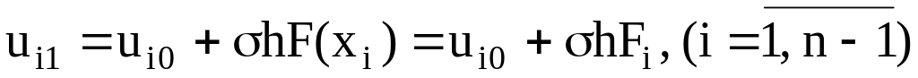 Значения функции u(x,t) на первом слое (к=1) можно приближенно найти из второго начального условия (7.29):